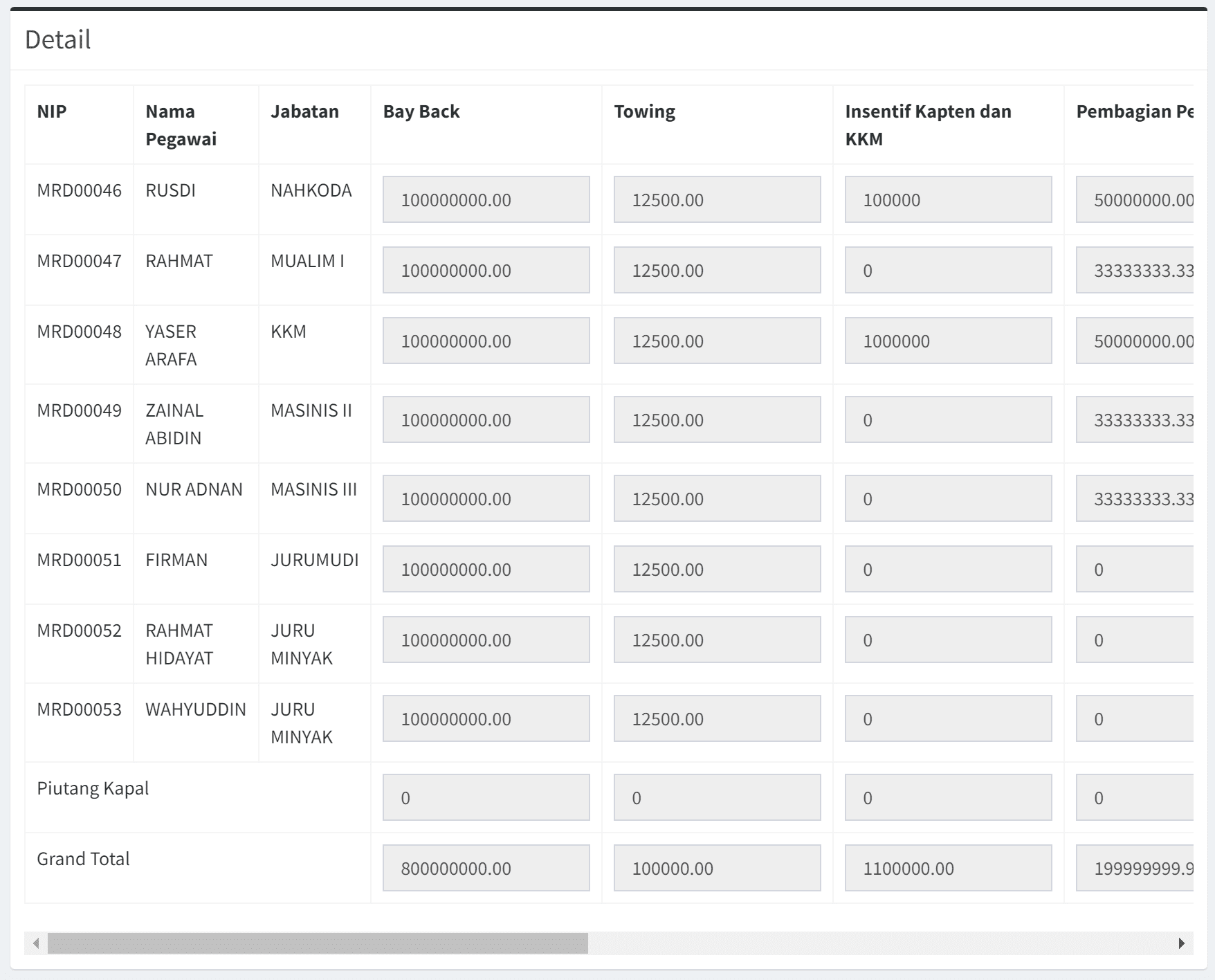 Keseluruhan data laporan dari gaji, bpjs, serta ppn 21