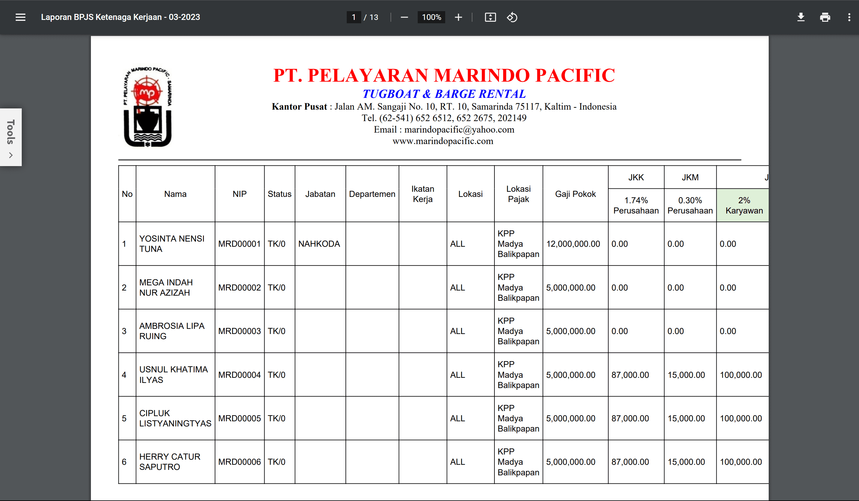 Keseluruhan data laporan dari gaji, bpjs, serta ppn 21